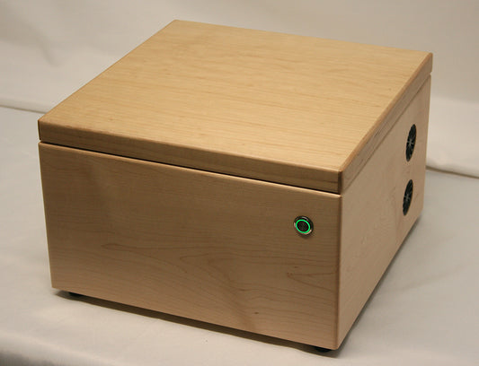 The SafeHouseBox is a high quality, beautiful, soundproof security container for mobile devices. Designed to ensure privacy for its users, this anti-eavesdropping solution ensures all your conversations are private. The exterior is made from solid wood and the interior soundproofing insulation is made from recycled plastic bottles emphasizing our focus on renewable resources and a green philosophy. All SafeHouseBoxes are rated soundproof up to 80 decibels (normal conversation is around 60-65 decibels) Dimensions are 12.5" x 12.5" x 8.25" high. Includes 6 foot power cord. Proudly made in the USA.